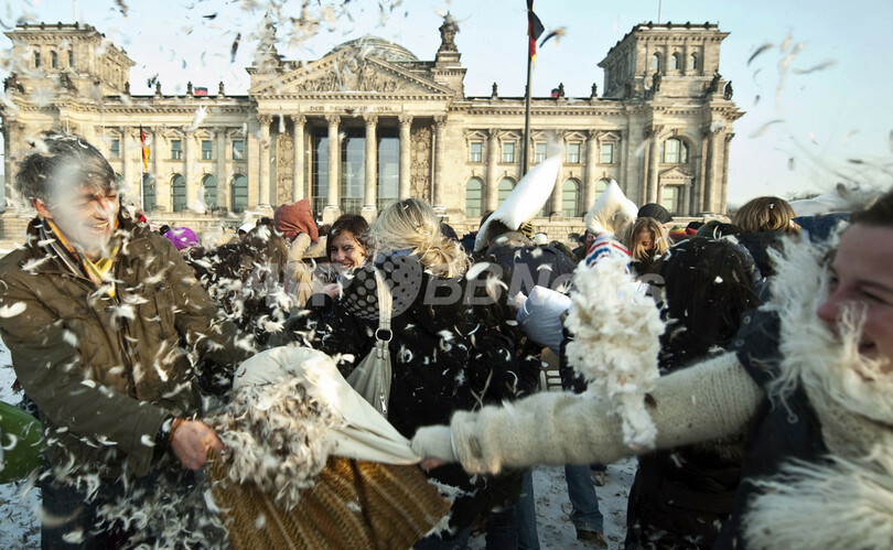 ニュース ライフ こぼれ話 議事堂前で枕投げ、独ピローファイト大会 2010年1月24日 8:46 発信地:ベルリン/ドイツ [ ヨーロッパ ドイツ ] このニュースをシェア ‹ › ❮ 3/3 ❯ 独ベルリン (Berlin)で開かれた枕投げ(ピローファイト)大会で枕を投げ合う参加者たち(2010年1月23日撮影)。(c)AFP/DDP/TIMUR EMEK 画像作成中 ! 【1月24日 AFP】ドイツの首都ベルリン (Berlin)にあるドイツ連邦議会議事堂(Reichstag)前で枕投げ(ピローファイト)の大規模なイベントが開かれ、大勢の参加者が枕の鳥の羽をまき散らしながら枕を投げ合った。(c)AFP ライフ 一覧へ> メディア・報道関係・法人の方向け 写真・動画 購入のお問合せ>