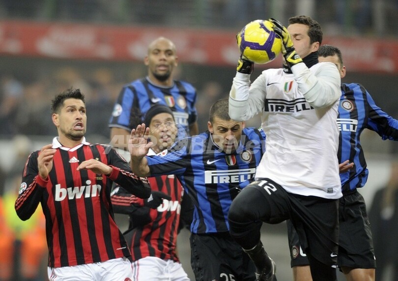 【1月25日 AFP】(記事更新)09-10イタリア・セリエA第21節、インテル(Inter Milan)対ACミラン(AC Milan)。試合は首位インテルが2-0でミラノダービーを制し、2位ミランとの勝ち点差を9に広げた。