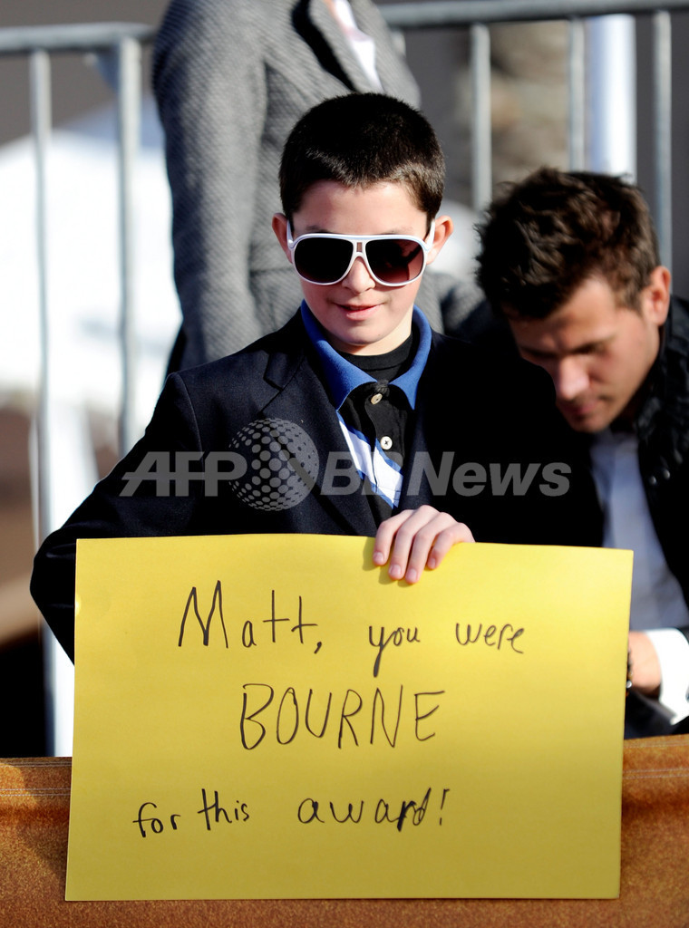 第16回映画俳優組合賞(Screen Actors Guild Awards)授賞式が23日、米ロサンゼルス(Los Angeles)で開催された。写真は、会場前でマット・デイモン(Matt Damon)を待つファン(2010年1月23日撮影)。(c)AFP/Getty Images/Kevork Djansezian