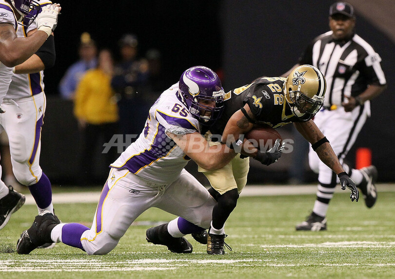 【1月25日 AFP】09NFLプレーオフ、ナショナル・カンファレンス(NFC)決勝、ニューオーリンズ・セインツ(New Orleans Saints)対ミネソタ・バイキングス(Minnesota Vikings)。試合は28-28の同点で迎えたオーバータイム(OT)にギャレット・ハートリー(Garrett Hartley)が40ヤードのフィールドゴールを決めたセインツが31-28で勝利し、チーム創設以来初のスーパーボウル進出を決めた。