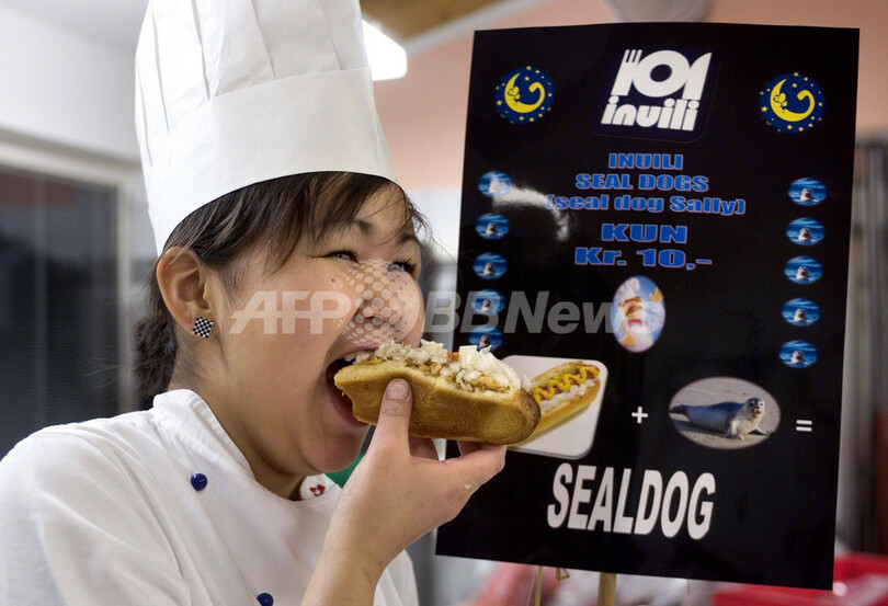 【1月26日 AFP】デンマーク領グリーンランド南部ナルサック(Narsaq)で開かれた文化イベント「グリーンランド・カルチャー・ナイト(Greenland Culture Night)」で25日、地元の料理学校「INUILI Food Academy」がアザラシの肉を用いたホットドッグ、その名も「シール(アザラシ)ドッグ」を発表した。この料理学校は研究所を併設しており、グリーンランドの食材を利用した食品開発も行っている。(c)AFP