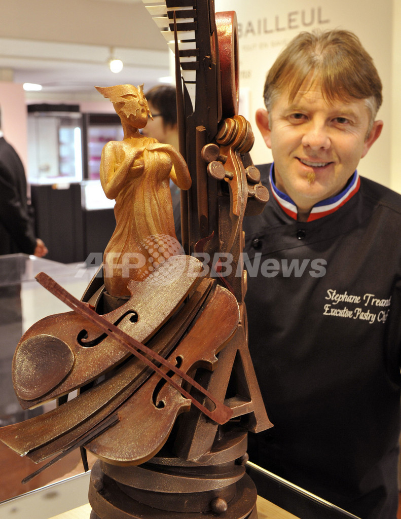 写真は、オープニングイベントで、オペラをテーマにしたチョコレート彫刻を披露する仏人ショコラティエ、ステファン・トレアン(Stephane Treand)氏(2010年1月26日撮影)。(c)AFP/Yoshikazu TSUNO