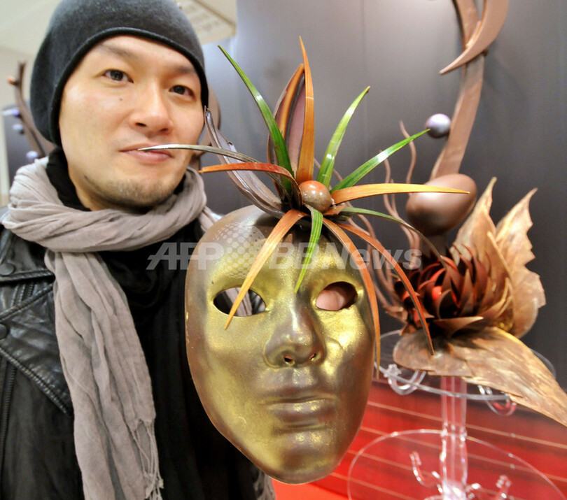 写真は、オープニングイベントで、チョコレート製の仮面とオペラをテーマにしたチョコレート作品を披露するショコラティエ、和泉光一(Koichi Izumi)氏(2010年1月26日撮影)。(c)AFP/Yoshikazu TSUNO