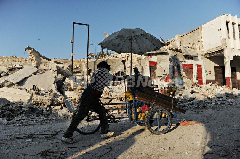 写真は、ポルトープランスで、地震で倒壊した建物で手に入れた物資を手押し車で運ぶ男性(2010年1月24日撮影)。(c)AFP/ROBERTO SCHMIDT