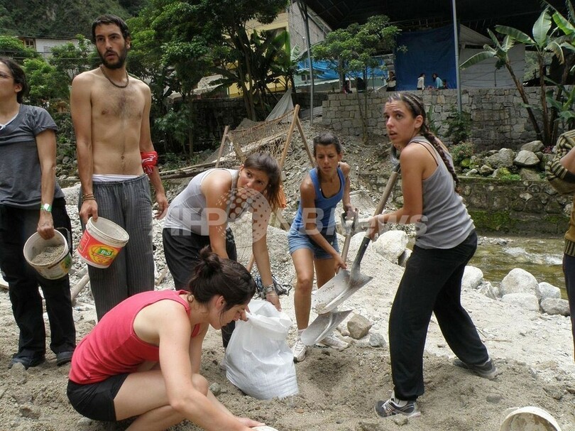 遺跡を訪れていた観光客らは、遺跡の入口にあたるアグアスカリエンテス(Aguas Calientes)とインカ帝国時代の首都だったクスコ(Cusco)とを結ぶ道路と鉄道が寸断されたため、数日にわたって孤立している。ペルー政府は軍のヘリコプター12機を動員し、救出作業を進めているが、当局者によると依然800人ほどが取り残されているという。28日には米国もヘリ6機を出して救出に協力すると表明した。(c)AFP