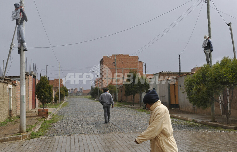 ニュース 社会 街角に犯罪者の指名手配人形、住民による私刑が増加 南米ボリビア 2010年1月29日 18:28 発信地:エルアルト/ボリビア [ 中南米 ボリビア ] このニュースをシェア ‹ › ❮ 13/14 ❯ 南米ボリビア・ラパス(La Paz)近郊の街エルアルト(El Alto)では、多発する犯罪に対する警察の不手際に業を煮やした住民らが、自らの手で犯人に私刑を加える例が増えている。非公式統計によると、2009年には強盗事件の犯人と疑われた15人以上が、住民によって絞首や火をつけられるなどしたという。 写真は、エルアルトの通りに吊るされた犯罪事件容疑者の人形。プラカードには「住民の皆さんへ。この容疑者を見つけたら、近隣住民全員に秘密電話で通報してください」と書かれている(2010年1月14日撮影)。(c)AFP/Aizar Raldes 画像作成中 ! 【1月29日 AFP】南米ボリビア・ラパス(La Paz)近郊の街エルアルト(El Alto)では、多発する犯罪に対する警察の不手際に業を煮やした住民らが、自らの手で犯人に私刑を加える例が増えている。非公式統計によると、2009年には強盗事件の犯人と疑われた15人以上が、住民によって絞首や火をつけられるなどしているという。(c)AFP 社会 一覧へ> メディア・報道関係・法人の方向け 写真・動画 購入のお問合せ>