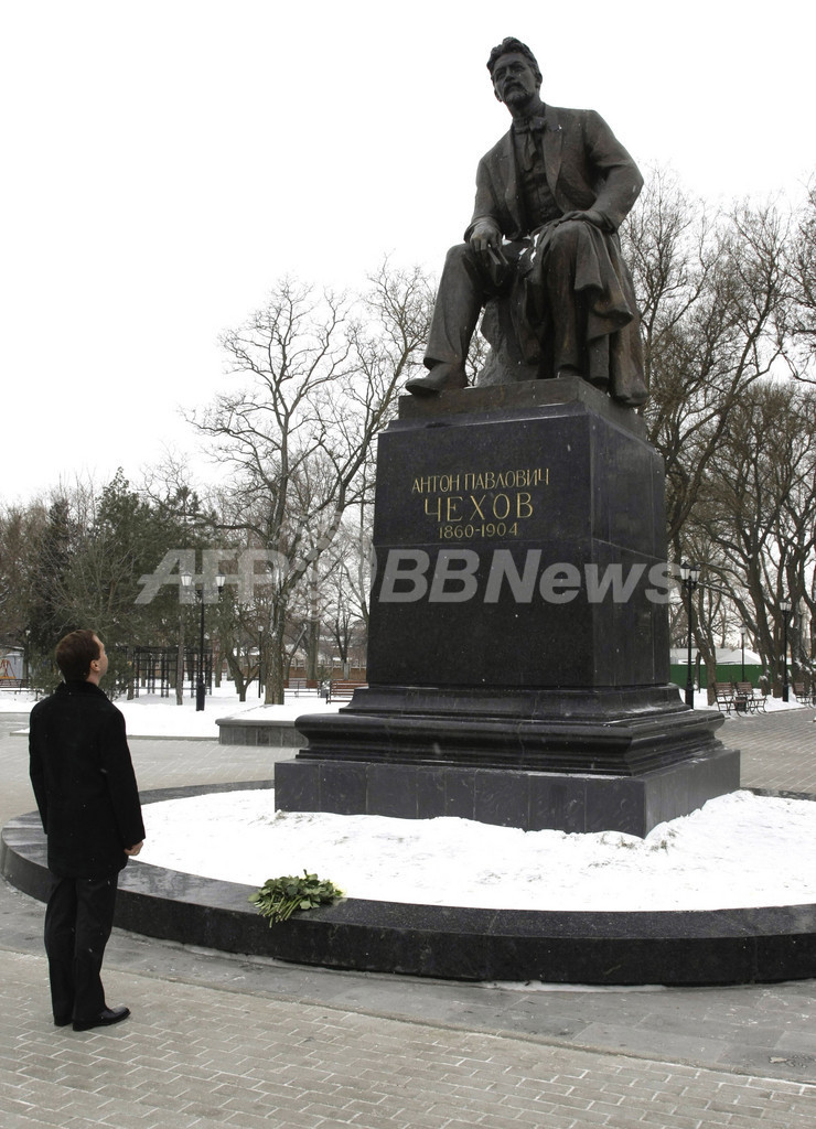 チェーホフは1860年1月29日、ロシア南部の港湾都市タガンログ(Taganrog)に生まれた。生誕150周年を記念して同市を訪問したメドベージェフ大統領は、ロシアを代表する舞台演出家らとの会合に出席。この模様はテレビで中継された。