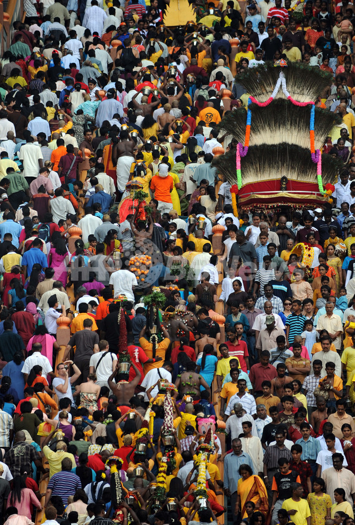 ニュース ライフ ヒンズー教の大祭タイプーサム、鉄串刺して苦行の行進 2010年1月31日 18:38 発信地:シンガポール/シンガポール [ アジア・オセアニア シンガポール ] このニュースをシェア ‹ › ❮ 18/25 ❯ シンガポールで30日、ヒンズー教の大祭タイプーサム(Thaipusam)が行われた。ムルガ(Muruga)神をあがめるこの祭りは、 タミル暦のタイ(Thai)の月の満月の日に行われる。信者らは「カバディ(Kavadi)」と呼ばれる御輿(みこし)を鉄串などで自分の身体に固定して苦行の行進を行う。この祭りはマレーシアでも行われる。写真は、早朝のマレーシア・クアラルンプール(Kuala Lumpur)で、272段の階段を上ってバトゥ洞窟(Batu cave)のヒンズー教寺院に向かうヒンズー教徒たち(2010年1月30日撮影)。(c)AFP/Saeed KHAN 画像作成中 ! 【1月31日 AFP】シンガポールで30日、ヒンズー教の大祭タイプーサム(Thaipusam)が行われた。ムルガ(Muruga)神をあがめるこの祭りは、 タミル暦のタイ(Thai)の月の満月の日に行われる。信者らは「カバディ(Kavadi)」と呼ばれる御輿(みこし)を鉄串などで自分の身体に固定して苦行の行進を行う。この祭りはマレーシアでも行われる。(c)AFP ライフ 一覧へ> メディア・報道関係・法人の方向け 写真・動画 購入のお問合せ>