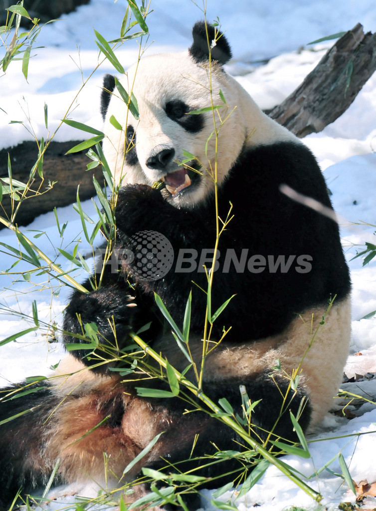 【2月1日 AFP】(写真追加)米ワシントンD.C.(Washington D.C.)にある国立動物園(National Zoo)で31日、同園生まれのオスのパンダ、タイシャン(Tai Shan、泰山)が、好物のリンゴやニンジン、笹などが入った3段の特製アイスケーキをプレゼントされた。タイシャンは、動物園と中国との協定に基づいて、4日に両親のふるさとである中国に「帰国」する。 関係者によるとタイシャンは、4日朝に警察のエスコートでダレス国際空港(Dulles International Airport)に向かい、フェデックス(FedEx)の貨物便(FedEx Express)で中国に向かう。途中でアトランタ(Atlanta)に寄り、メスのパンダ、メイラン(Mei Lan、美蘭)が同乗するという。 FedExはタイシャンを乗せる貨物機のコックピット脇に、12メートル四方の巨大なパンダのエンブレムを飾る予定。同社責任者は「フェデックス・パンダ・エクスプレス(FedEx Panda Express)だ」と話している。(c)AFP 【関連記事】ワシントンが「パンダレス」に、市民から惜しむ声続々