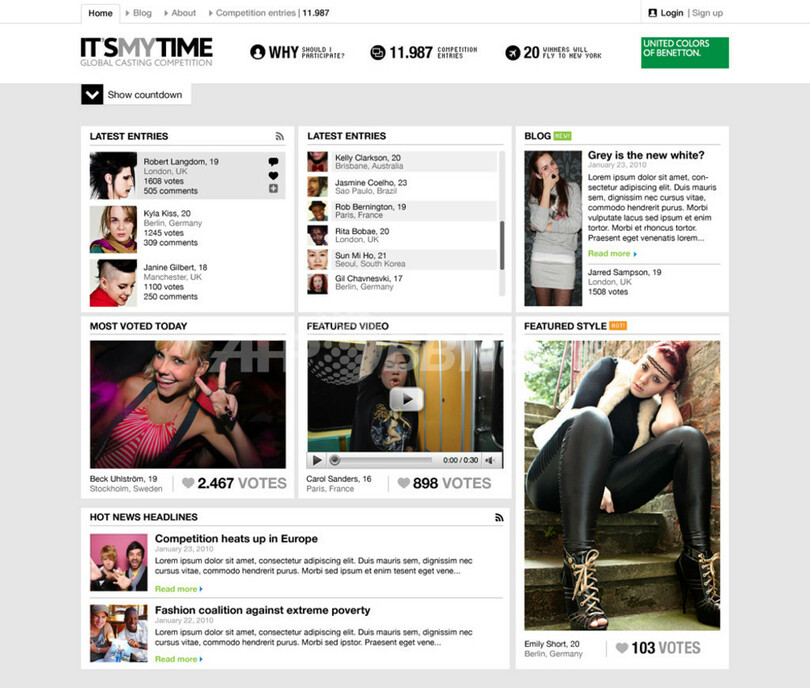 【2月8日 MODE PRESS】世界120カ国に展開している伊アパレルブランド「ベネトン(Benetton)」がオンライン上で国際的モデルオーディション「It's My Time.」を開催する。ファイナリストは、同社の2010/11年秋冬コレクションのキャンペーンモデルに起用される予定だ。