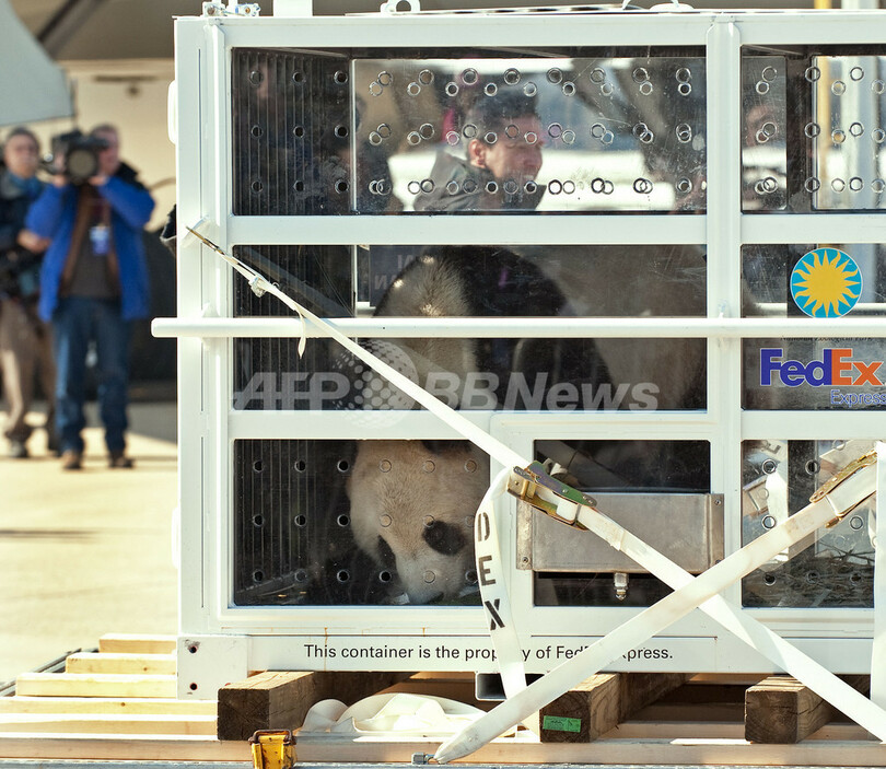 【2月5日 AFP】米国生まれの2頭のパンダが4日、中国での人工繁殖プログラムに使われるため、フェデックス(FedEx)の貨物機で、四川(Sichuan)省の成都(Chengdu)に向かった。2頭は、ワシントンD.C.のスミソニアン国立動物園(Smithsonian National Zoo)で生まれたオスのタイシャン(Tai Shan、泰山)と、アトランタ動物園(Atlanta Zoo)で生まれたメスのメイラン(Mei Lan、美蘭)。2頭のために特別に用意された貨物機は「フェデックス・パンダ・エクスプレス(FedEx Panda Express)」と名付けられた。(c)AFP