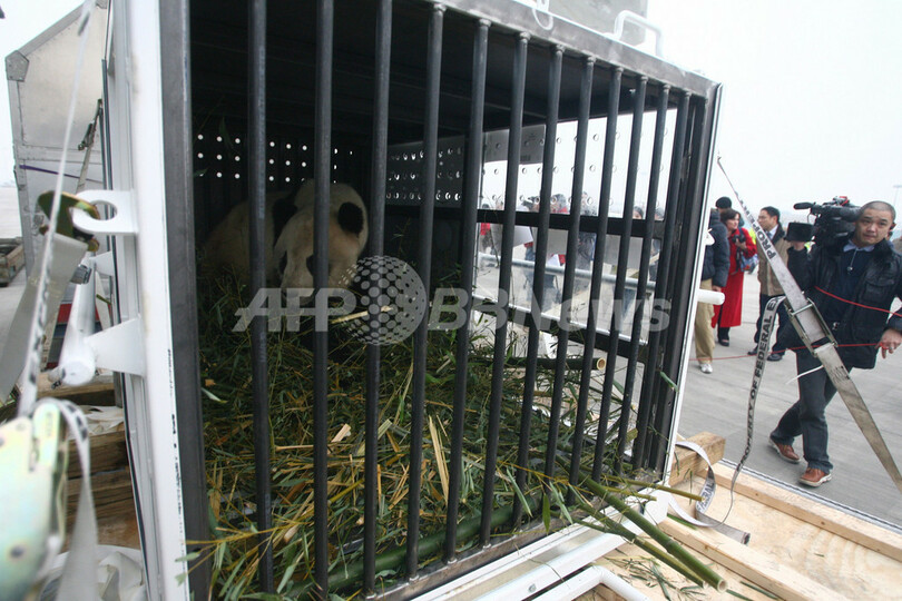【2月6日 AFP】米国生まれの2頭のパンダが5日、特別機で中国四川(Sichuan)省に到着した。 到着したのは4年半前にワシントンD.C.(Wasihngton D.C.)のスミソニアン国立動物園(Smithsonian National Zoo)で生まれたオスのタイシャン(Tai Shan、泰山)と、3年前にアトランタ動物園(Atlanta Zoo)で生まれたメスのメイラン(Mei Lan、美蘭)。当初はそれぞれ2歳になった時点で中国に返還されることになっていたが、期限が延長されていた。 中国のテレビ局は、米バージニア(Virginia)州のダレス国際空港(Dulles International Airport)から2頭を運んできた米輸送大手フェデックス(FedEx)の特別機「フェデックス・パンダ・エクスプレス(FedEx Panda Express)」が四川省の省都、成都(Chengdu)の空港に到着する模様を生中継した。 このパンダのイラストが塗装されたボーイング777(Boeing 777)型機から特別製のケージが運び出されると、積み込まれた75キロのササをパンダが食べる様子を撮影しようと、大勢のカメラマンが押し寄せた。 このところ米中関係は、インターネット検索大手グーグル(Google)の検閲問題や台湾への米国製武器売却をめぐり緊張が高まっているが、在中国米大使館は、2頭のパンダは米中関係において特別な地位を占めているというデイビッド・ブラウン(David Brown)在成都米国総領事の声明を発表した。中国は冷戦時代から巨額のレンタル料を受け取ってパンダを貸し出す「パンダ外交」を展開してきた。 2頭は今後、中国のパンダ繁殖計画に加えられる。メイランにふさわしいお婿さんを一般の人が投票できるウェブサイトも出来ているが、彼女の気に入るオスがいなければ人工授精に切り替えるという。 また、米国生まれのパンダたちが中国人飼育員の指示を理解できるよう、タイシャンが暮らすことになる四川省の臥龍(Wolong)パンダ保護研究センターでは、英語を話せる職員が米国の飼育員と協力して飼育にあたることになっている。(c)AFP/Susan Stumme