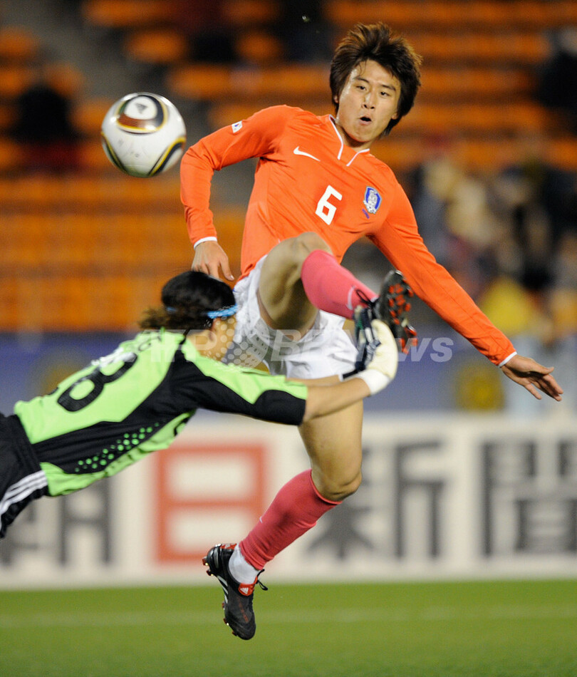 韓国は前半10分に金正友(Kim Jung-Woo、キム・ジョンウ)の得点で先制すると、同24分に具滋哲(Koo Ja-Cheol、ク・ジャチョル)、同32分に李同国(Dong Gook Lee、イ・ドングク)、同37分に李昇烈(Lee Seung-Yeoul、イ・スンリョル)の得点で加点し、前半だけで4点を奪った。(c)AFP