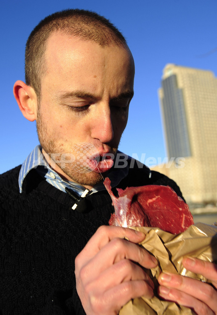 【2月9日 AFP】ウェブサイト管理で生計を立てるニューヨーカー、ブラッド・アベルブフ(Vlad Averbukh)さん(29)のランチタイムにフォークは不要だが、ナプキンは欠かせない。その理由は「血がしたたる」かもしれないからだ。