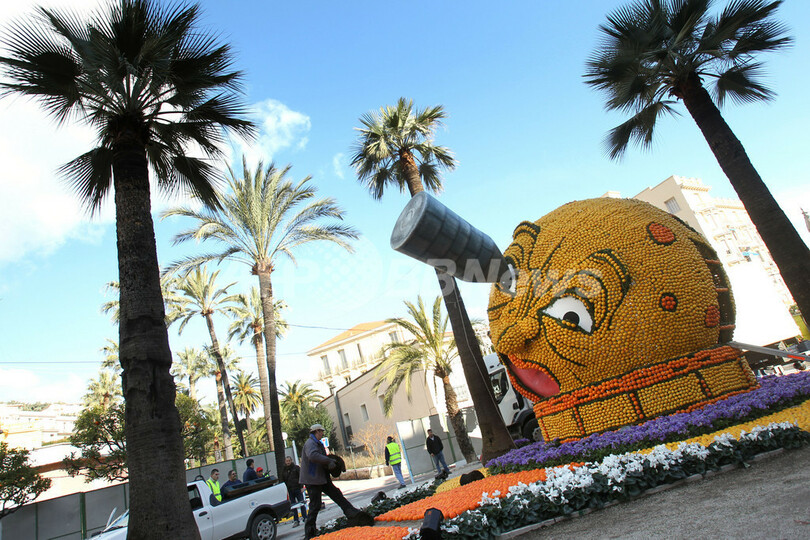ニュース ライフ 南仏マントン恒例の「レモン祭り」 2010年2月11日 16:08 発信地:マントン/フランス [ ヨーロッパ フランス ] このニュースをシェア ‹ › ❮ 4/11 ❯ フランス・マントン(Menton)で12日、毎年恒例のレモン祭り(Fete du Citron)が開幕する。77回目を迎える今年の会期は3月3日まで。街頭では、レモンなどのかんきつ類を使ったオブジェの準備が進んでいる。写真は、かんきつ類で作られたオブジェ(2010年2月10日撮影)。(c)AFP/VALERY HACHE 画像作成中 ! 【2月11日 AFP】フランス・マントン(Menton)で12日、毎年恒例の「レモン祭り(Fete du Citron)」が開幕する。77回目を迎える今年の会期は3月3日まで。街頭では、レモンを使ったオブジェの準備が進んでいる。(c)AFP ライフ 一覧へ> メディア・報道関係・法人の方向け 写真・動画 購入のお問合せ>