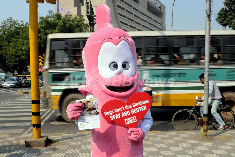 ニュース ライフ ペットにもコンドーム?PETAが不妊・去勢キャンペーン インド 2010年2月11日 23:36 発信地:ニューデリー/インド [ アジア・オセアニア インド ] このニュースをシェア ‹ › ❮ 2/2 ❯ インドのニューデリー(New Delhi)で、コンドームのぬいぐるみをかぶり、ペットの不妊・去勢手術を呼び掛ける啓蒙パンフレットを配る国際動物愛護団体「動物の倫理的扱いを求める人々の会(PETA)」のメンバー(2010年2月11日撮影)。(c)AFP/Prakash SINGH 画像作成中 ! 【2月11日 AFP】インドのニューデリー(New Delhi)で11日、国際動物愛護団体「動物の倫理的扱いを求める人々の会(People for the Ethical Treatment of Animals、PETA)」が、イヌやネコの増えすぎ問題の対策として、ペットの不妊・去勢手術を呼び掛ける啓蒙キャンペーンを展開した。(c)AFP ライフ 一覧へ> メディア・報道関係・法人の方向け 写真・動画 購入のお問合せ>