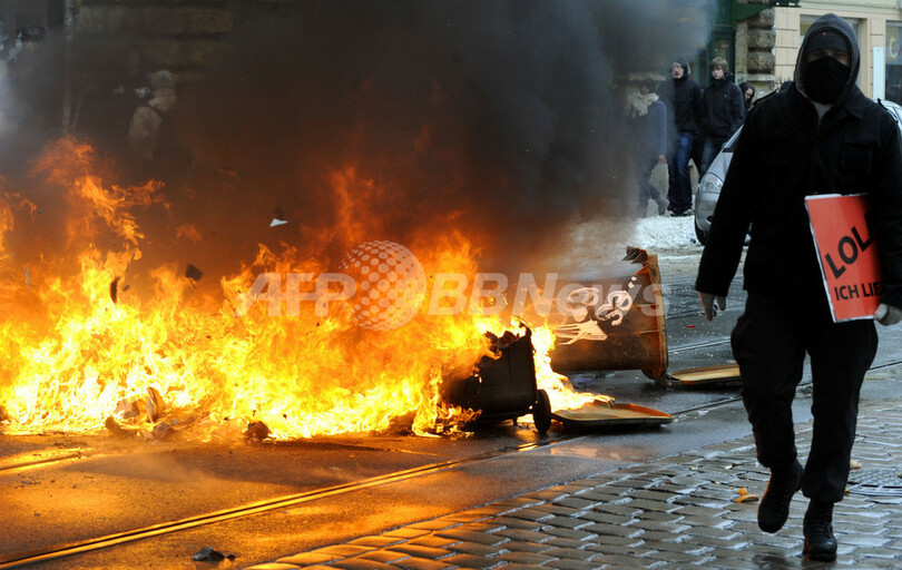 【2月15日 AFP】ドイツ東部ドレスデン(Dresden)で同市の大半が廃虚と化した第2次世界大戦中の連合軍爆撃から65周年を迎えた13日、極右ネオナチが計画していたデモ行進を市民グループらが「人間の鎖」を作り自力で阻止した。