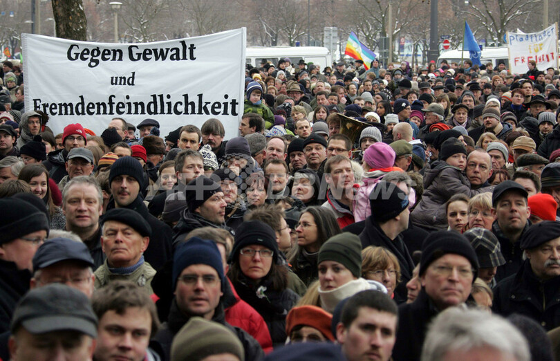この日、追悼集会を企画したネオナチ団体6400人あまりがノイシュタット(Neustadt)駅前に集結。数人が演説を行った後、デモ行進に向かおうとしたが、市民団体メンバーら1万2000人の「人間の鎖」に行く手を阻まれた。