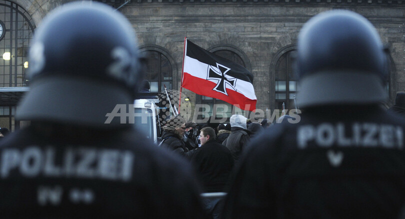 この日、追悼集会を企画したネオナチ団体6400人あまりがノイシュタット(Neustadt)駅前に集結。数人が演説を行った後、デモ行進に向かおうとしたが、市民団体メンバーら1万2000人の「人間の鎖」に行く手を阻まれた。