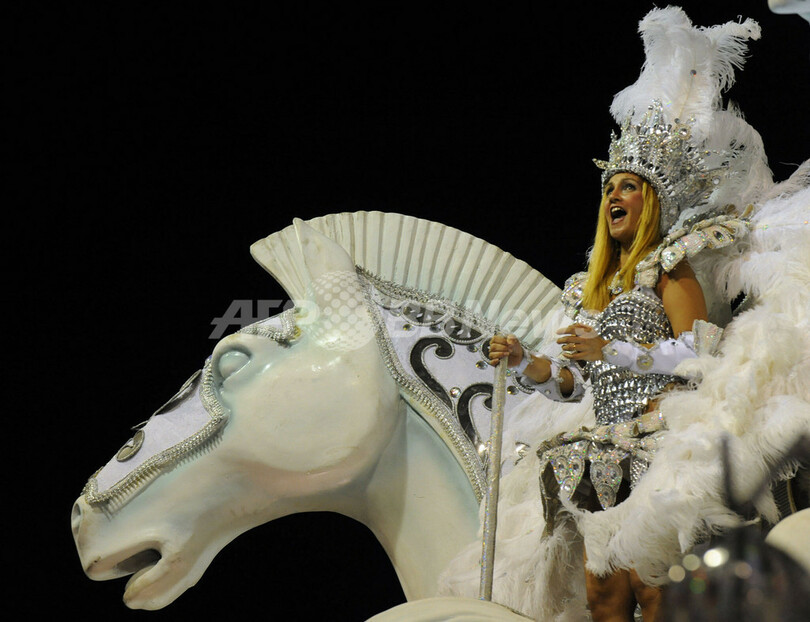 写真はサンバチーム「インペラトリス・レオポウジネンセ(Imperatriz Leopoldinense)」のパフォーマンス(2010年2月14日撮影)。(c)AFP/Juan BARRETO