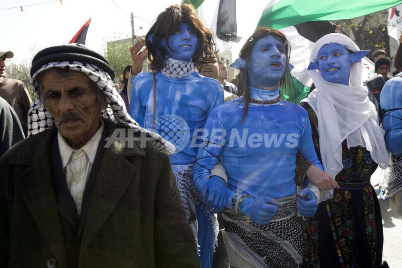 ニュース 政治・経済 映画『アバター』ナヴィの格好で分離壁に抗議、パレスチナ 2010年2月16日 12:04 発信地:ビリン/パレスチナ自治区 [ 中東・北アフリカ パレスチナ自治区 ] このニュースをシェア ‹ › ❮ 3/5 ❯ パレスチナ自治区ヨルダン川西岸(West Bank)のビリン(Bilin)で、映画『アバター(Avatar)』に登場する先住民ナヴィ(Na'vi)の格好をし、イスラエルの建設する分離壁への抗議デモを行う人たち(2010年2月12日撮影)。(c)AFP/OREN ZIV 画像作成中 ! 【2月16日 AFP】パレスチナ自治区ヨルダン川西岸(West Bank)のビリン(Bilin)で25日、映画『アバター(Avatar)』に登場する先住民ナヴィ(Na'vi)の格好をしたパレスチナ人やイスラエル人、さらに外国人平和活動家らが、イスラエルの建設する分離壁への抗議デモを行った。(c)AFP 政治・経済 一覧へ> メディア・報道関係・法人の方向け 写真・動画 購入のお問合せ>
