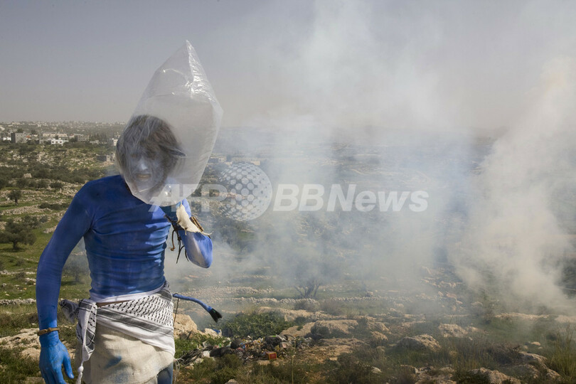 ニュース 政治・経済 映画『アバター』ナヴィの格好で分離壁に抗議、パレスチナ 2010年2月16日 12:04 発信地:ビリン/パレスチナ自治区 [ 中東・北アフリカ パレスチナ自治区 ] このニュースをシェア ‹ › ❮ 2/5 ❯ パレスチナ自治区ヨルダン川西岸(West Bank)のビリン(Bilin)で、映画『アバター(Avatar)』に登場する先住民ナヴィ(Na'vi)の格好をして、イスラエルの建設する分離壁への抗議デモを行う人。写真はビニール袋をかぶり催涙ガスを防ぐデモ参加者(2010年2月12日撮影)。(c)AFP/OREN ZIV 画像作成中 ! 【2月16日 AFP】パレスチナ自治区ヨルダン川西岸(West Bank)のビリン(Bilin)で25日、映画『アバター(Avatar)』に登場する先住民ナヴィ(Na'vi)の格好をしたパレスチナ人やイスラエル人、さらに外国人平和活動家らが、イスラエルの建設する分離壁への抗議デモを行った。(c)AFP 政治・経済 一覧へ> メディア・報道関係・法人の方向け 写真・動画 購入のお問合せ>