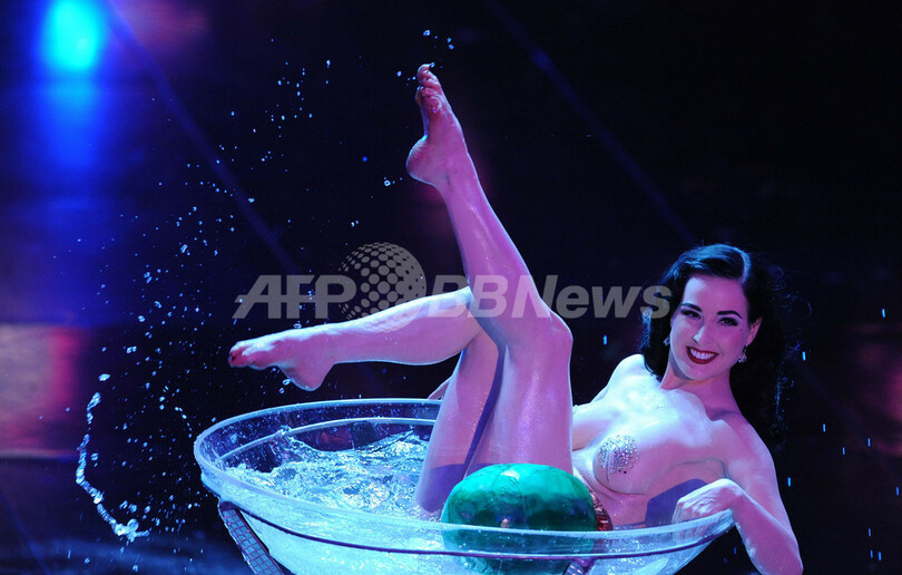【2月17日 AFP】米バーレスク・ダンサーのディータ・ヴォン・ティース(Dita Von Teese)が16日、イタリア・サンレモ(Sanremo)で開催中の第60回サンレモ音楽祭(Italian Music Festival of Sanremo)で、巨大マティーニグラスを使ったセクシーなパフォーマンスを披露した。(c)AFP