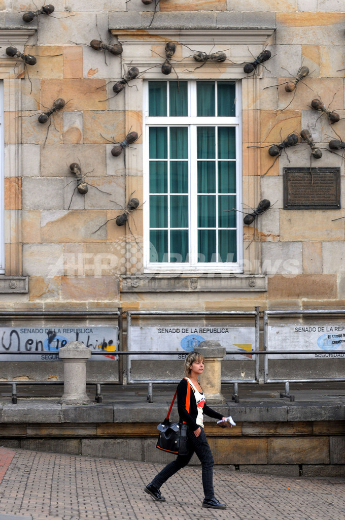 ニュース ライフ コロンビアの国会議事堂にアリの大群? 2010年2月17日 23:32 発信地:ボゴタ/コロンビア [ 中南米 コロンビア ] このニュースをシェア ‹ › ❮ 9/13 ❯ コロンビアの首都ボゴタ(Bogota)で16日、国会議事堂の壁面に巨大なアリの群れがはい回るアート作品が展示された。コロンビア人アーティスト、Rafael Gomezbarrosさんの作品。アリは、紛争の続くコロンビアで避難民となった人びとを象徴しているという。(2010年2月16日撮影)。(c)AFP/Rodrigo ARANGUA 画像作成中 ! 【2月17日 AFP】コロンビアの首都ボゴタ(Bogota)で16日、国会議事堂の壁面に巨大なアリの群れがはい回るアート作品が展示された。(c)AFP ライフ 一覧へ> メディア・報道関係・法人の方向け 写真・動画 購入のお問合せ>