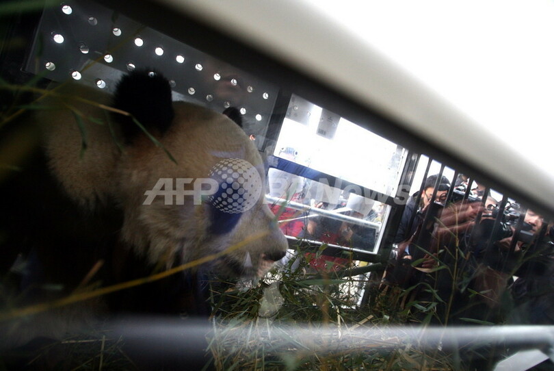 2頭のパンダたちは、1か月間の検疫隔離期間が終了し次第、一般に公開されるという。(c)AFP