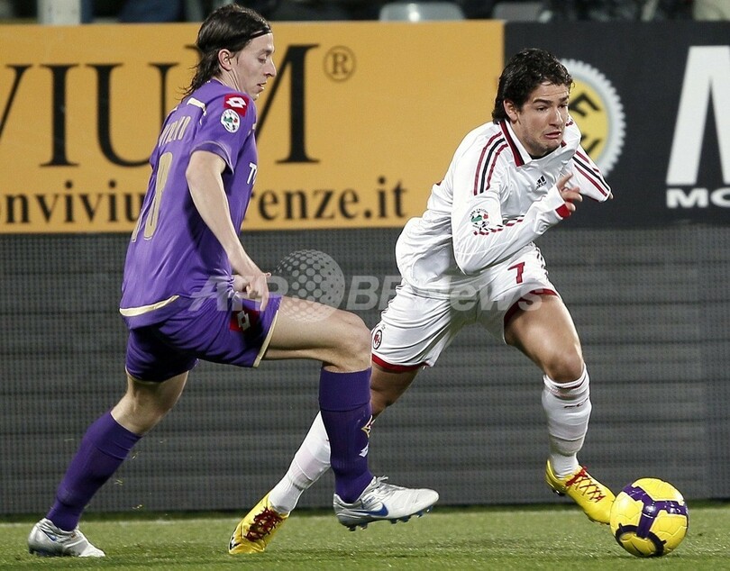 【2月25日 AFP】(記事更新、写真追加)09-10イタリア・セリエA第17節、フィオレンティーナ(Fiorentina)対ACミラン(AC Milan)。試合はミランが2-1で勝利した。