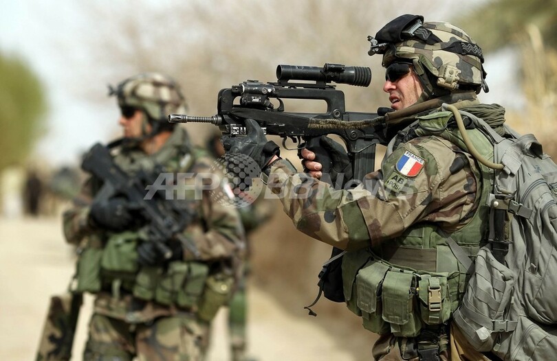 写真は、マルジャ近郊のNad-e-Aliでアフガニスタン国軍の兵士(フレーム外)とともにパトロールをするフランス軍兵士ら(2010年2月25日撮影)。(c)AFP/THOMAS COEX