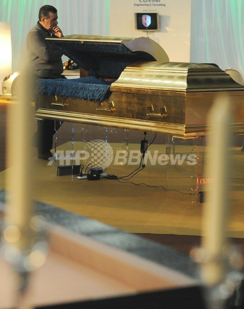 【2月27日 AFP】イタリア北部ベローナ(Verona)で26日、世界各地のぜいたく品を集めた見本市「Luxury and Yachts Show」が開幕した。中でも目を引くのは、携帯電話付きのきらびやかな黄金のひつぎだ。