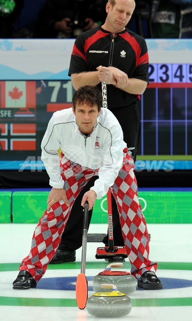 【2月28日 AFP】(写真追加)2010年バンクーバー冬季五輪、男子カーリング決勝、カナダ対ノルウェー。試合はカナダが6-3でノルウェーを下し、1次リーグから全勝で2連覇を飾った。
