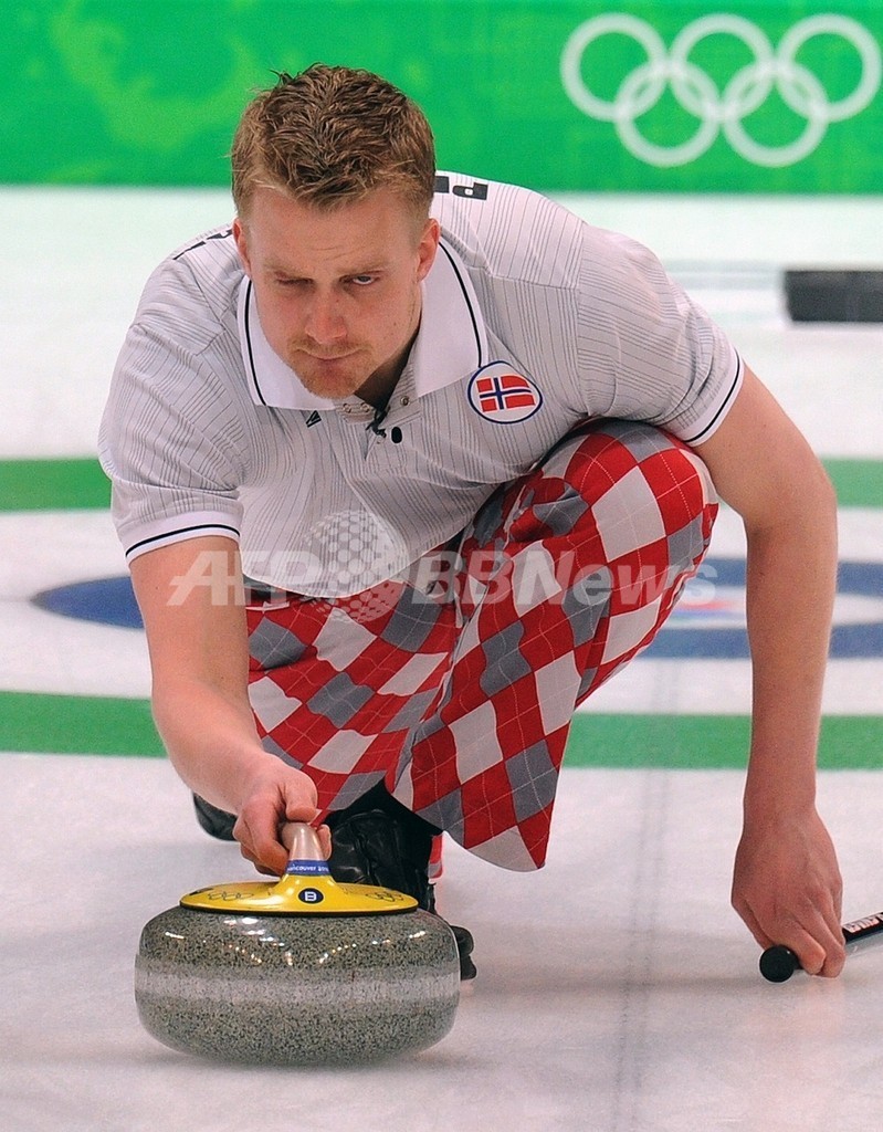 写真はストーンを投じるノルウェーのホーバル・ペテルソン(%%Haavard Petersson%%)。(2010年2月27日撮影)(c)AFP/SAEED KHAN