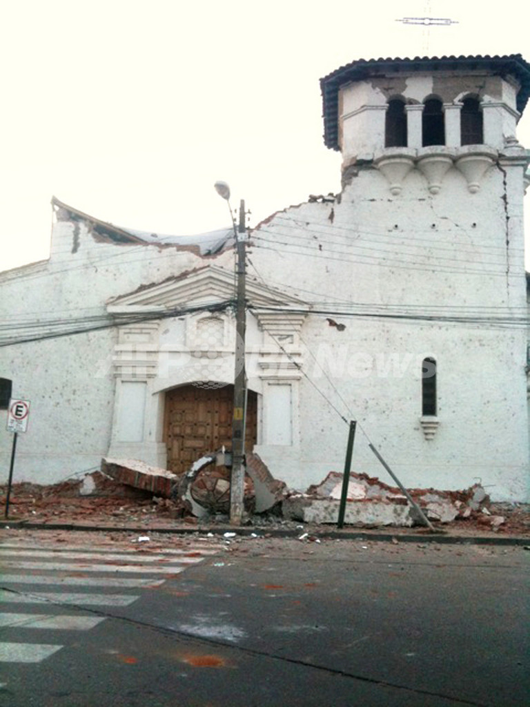 夜明け前に発生した地震で、首都サンティアゴ(Santiago)の大部分が停電となり、電話もほとんどが通じていない。現地のAFP記者によると、壁や石造建築が倒壊しており、パジャマ姿の市民が路上にあふれ出ているという。