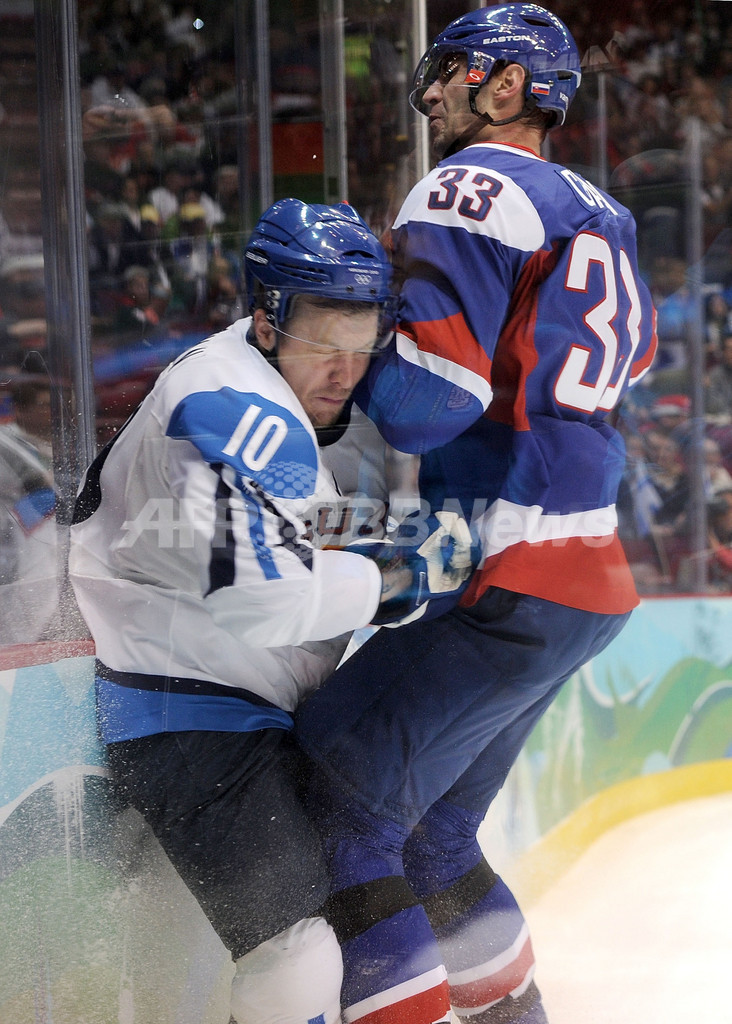 【2月28日 AFP】(写真追加)2010年バンクーバー冬季五輪アイスホッケー男子3位決定戦、フィンランド対スロバキア。試合は5-3でフィンランドが勝利し、銅メダルを獲得した。
