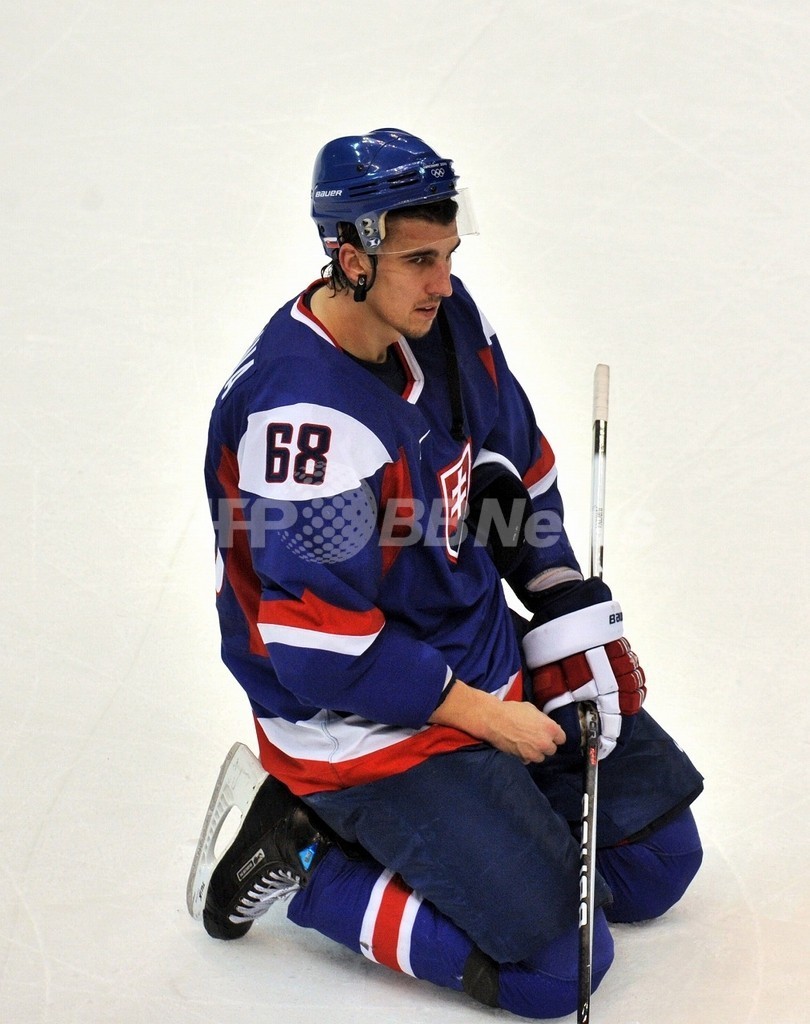 写真は敗戦を悔やむスロバキアのミラン・ユルツィナ(%%Milan Jurcina%%)。(2010年2月27日撮影)(c)AFP/CRIS BOURONCLE