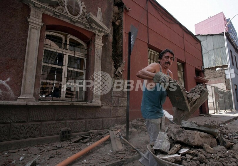 国連によると本震後の余震は51回に上り、震度もマグニチュード(M)4.9~6.9といまだ警戒が必要だ。震源地からある程度離れていたサンティアゴでは、市中心部の大教会と国際空港に大きな損傷を受けた以外、多くの建物は外からは異状なく見えるが、内部の壁や床は崩れ落ち、備品は砕け散っている。市民600万人の多くは余震を恐れて屋外にとどまっている。今回の地震による死者は300人を超えるとみられている。(c)AFP/Moises Avila
