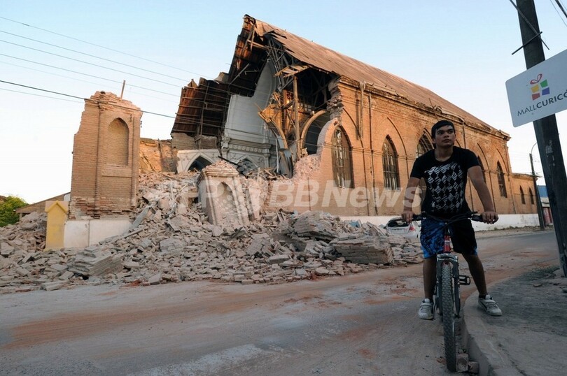 被害の大きいチリ中部からは、崩壊した建物や橋などの映像が届いている。亀裂の入った市街の道路には車両が転がり、がれきが散乱するほか、陸橋にかろうじてぶらさがった状態の車も見える。