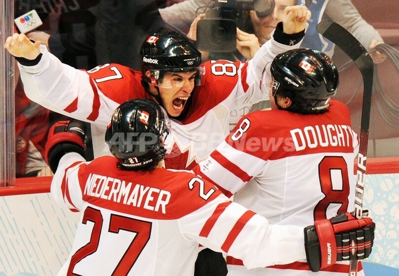 カナダは延長7分40秒、ジェローム・イギンラ(Jarome Iginla)のパスからシドニー・クロスビー(Sidney Crosby)が決勝点を挙げた。同種目で開催国が金メダルを獲得するのは、1980年レークプラシッド五輪の米国以来、30年ぶり。(c)AFP/Greg Heakes