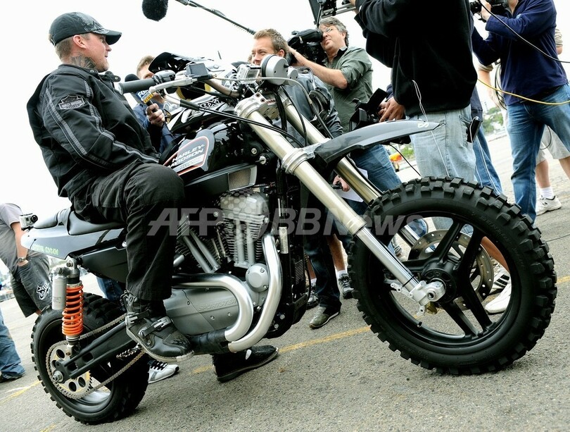 バイクジャンプでは、米国の伝説的なスタントマン、エベル・ニーベル(Evel Knievel)さんが1975年、オハイオ(Ohio)州キングスアイランド(King's Island)で14台のバスを飛び越えた記録が有名。このわずか数か月前、ニーベルさんは英ロンドンのウェンブリー・スタジアム(Wembley Stadium)でバイクジャンプを失敗してクラッシュしていた。(c)AFP