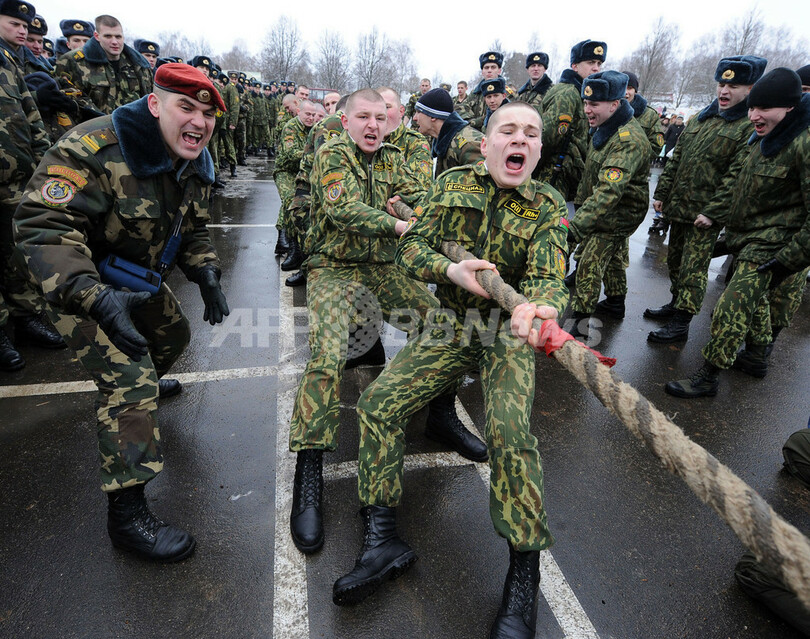 ニュース 政治・経済 こぼれ話 冬の終わりに腕試し、ベラルーシの特殊部隊 2010年3月2日 20:00 発信地:ミンスク/ベラルーシ [ ロシア・CIS ベラルーシ ] このニュースをシェア ‹ › ❮ 5/6 ❯ ベラルーシの首都ミンスク(Minsk)で開かれた冬の終わりを祝福する式典で、綱引きで勝負する特殊部隊隊員ら(2010年2月28日撮影)。(c)AFP/VIKTOR DRACHEV 画像作成中 ! 【3月2日 AFP】ベラルーシの首都ミンスク(Minsk)で2月28日、内務省特殊部隊の兵舎で冬の終わりを祝福する式典が開かれ、隊員らがさまざまな「技」を披露した。(c)AFP 政治・経済 一覧へ> メディア・報道関係・法人の方向け 写真・動画 購入のお問合せ>