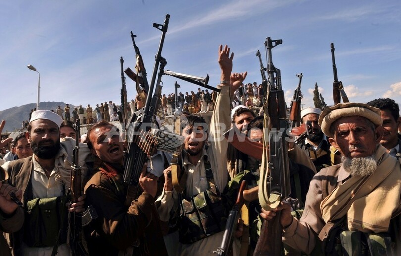 報道陣が入った際、数百人の地元部族民がテレビカメラの前で銃を掲げて軍を歓迎した。タリバンが戻ってこないよう、親政府民兵組織(ラシュカル、lashkar)を作るという者もいた。ハビブラ(Habibullah)という名前の男性は「軍がこの地に平和をもたらしてくれた。わたしは幸せだ。われわれはラシュカルに加わる用意がある」と語った。(c)AFP/Khurram Shahzad