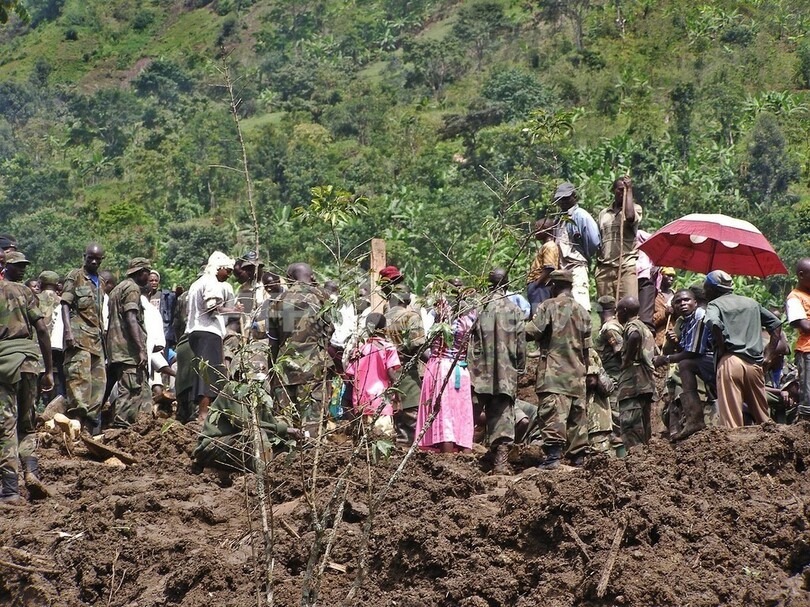 ウガンダ赤十字社の広報担当者は、「80人の遺体を収容した。交易施設にいた100人が生き埋めになったという報告があり、その100人を含めると、現在400人以上が行方不明となっている」と述べた。(c)AFP