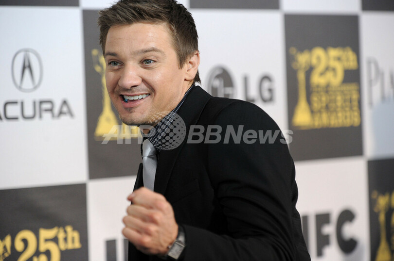 米カリフォルニア(California)州サンタモニカ(Los Angeles)で5日、2009年の最も優れた独立系映画を表彰するインディペンデント・スピリット賞(Independent Spirit Awards)の授賞式が開催され、多くのスターが出席した。写真は、会場に姿を見せた俳優ジェレミー・レナー(Jeremy Renner、2010年3月5日撮影)。(c)AFP/Robyn BECK
