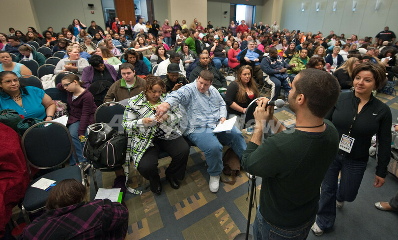 【3月9日 AFP】米ワシントンD.C.(Washington D.C.)のワシントン・コンベンション・センター(Washington Convention Center)で6日、人気リアリティー番組『The Biggest Loserシーズン10』のオーディションが開催され、500人を越える参加希望者が集まった。この番組は、出演者が運動などで減量していくという番組で、90か国で放映されているほか、25か国で同様の番組が制作されている人気番組。2004年の放送開始以来、番組関連の健康グッズなどが販売されるほどの人気で、医師や専門家の間での評判もよいという。オーディションは全米各地で行われている。(c)AFP