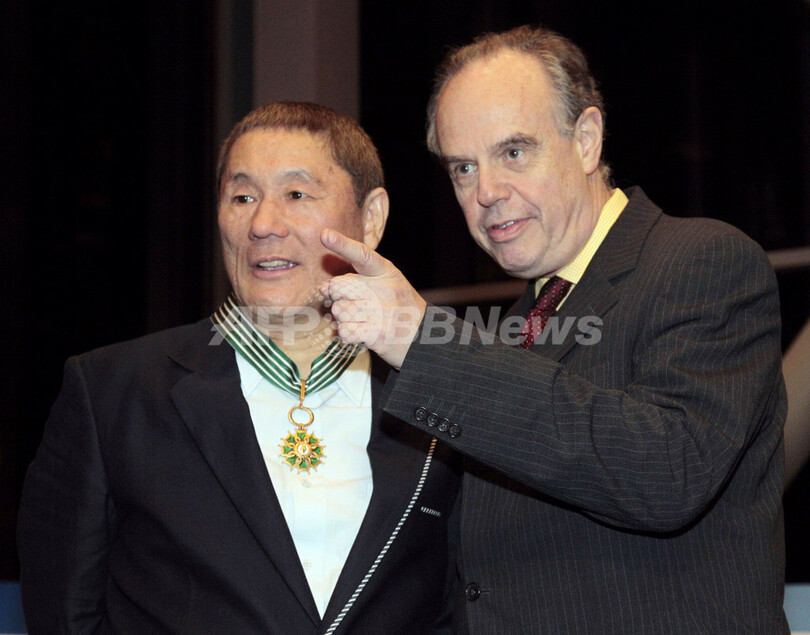 【3月10日 AFP】フランスのフレデリック・ミッテラン(Frederic Mitterrand)文化・通信相は9日、パリ(Paris)のカルティエ現代美術財団(Fondation Cartier)本部で、映画監督でタレントの北野武(Takeshi Kitano)さんに芸術文化勲章の最高章コマンドゥールを授与した。