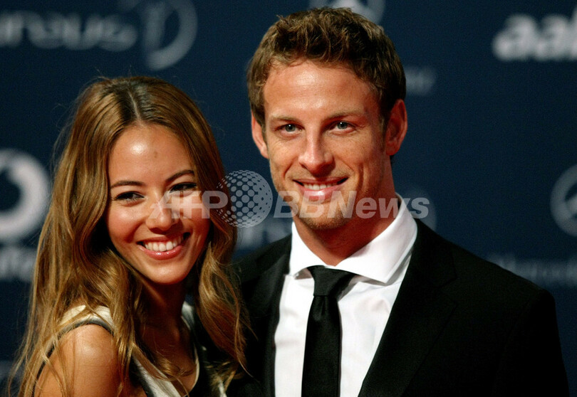写真はブレークスルー賞に選出されたF1ドライバーのジェンソン・バトン(%%Jenson Button%%)、左は恋人の道端ジェシカ(%%Jessica Michibata%%)。(2010年3月10日撮影)(c)AFP/MARWAN NAAMANI