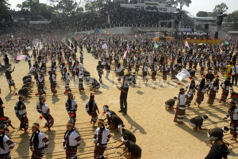 1万人のバンブーダンスでギネス記録更新、インド・ミゾラム州