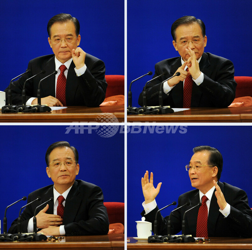グーグルの問題について質問された温首相は、中国は外国企業に門戸を開いており、政府は国内の企業に対するのと同じ対応をしていると述べるにとどめた。英紙フィナンシャル・タイムズ(Financial Times)は13日、グーグルは「99.9%」の確率で中国市場から撤退する見通しだと報じている。(c)AFP/Susan Stumme